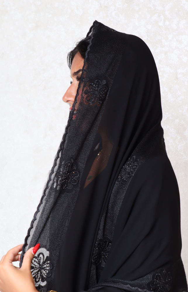 طرحة حرير خطوط عريضة وفصوص اسود 2