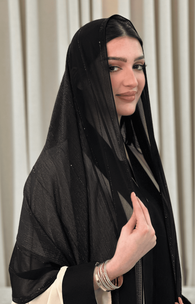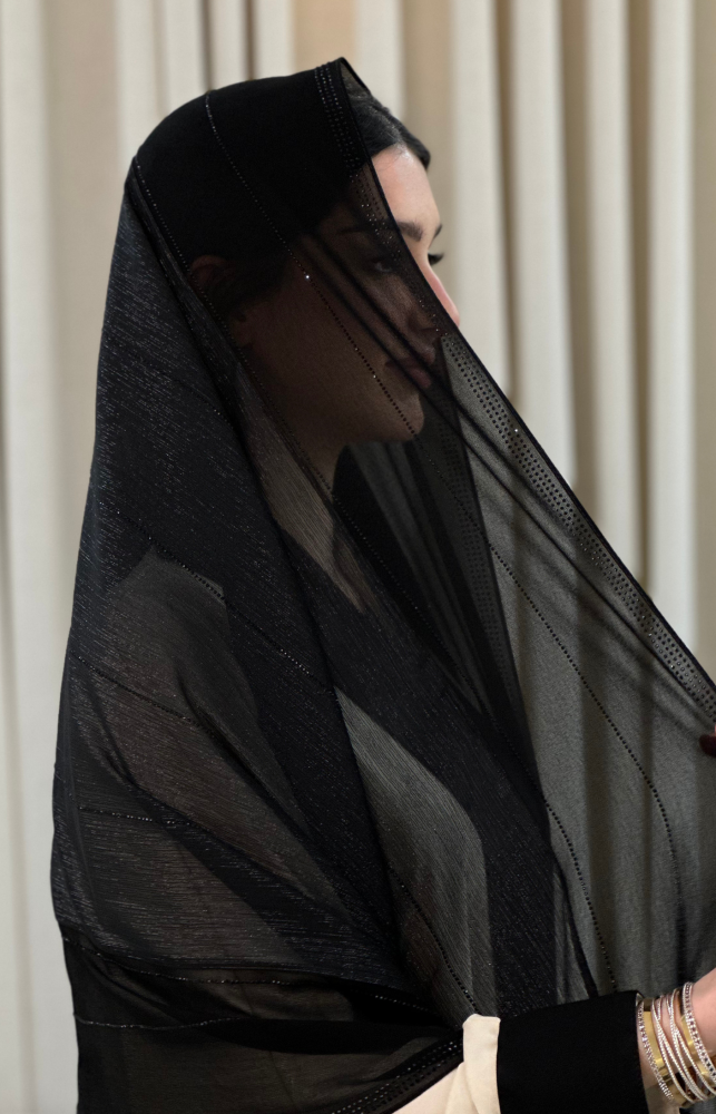 طرحة حرير طبيعي فصوص اسود واورقنزا 121
