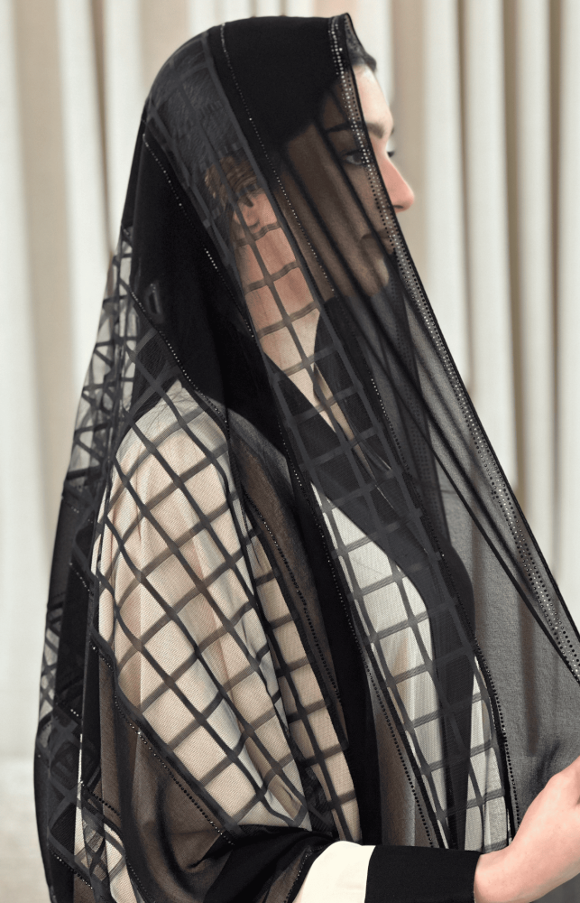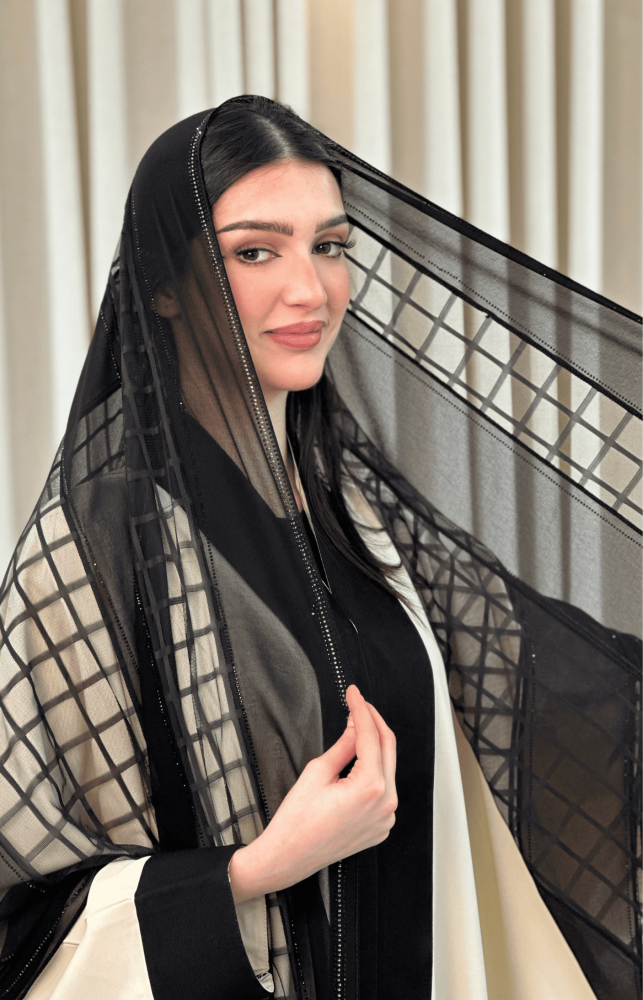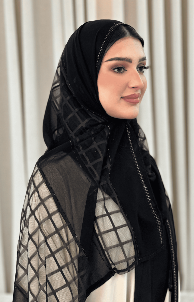 طرحة حرير طبيعي فصوص رصاصي واسود 122