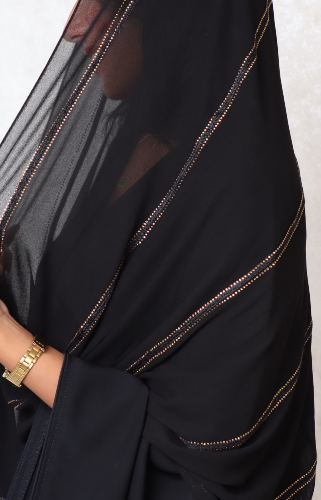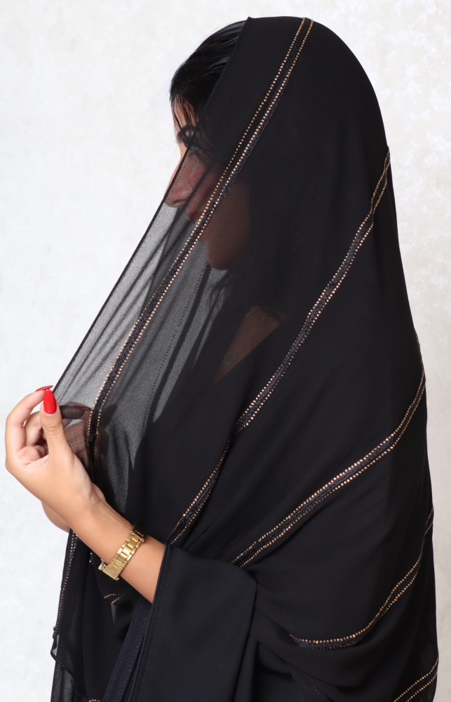 طرحة حرير 5 خطوط تطريز وفصوص ذهبي 160